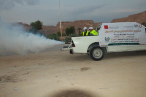 وشمل المشروع تنفيذ حملة رش لمكافحة البعوض والرش الرذاذي للحد من انتشار الأمراض الوبائية التي تهدد حياة المواطنين بعد السيول، إلى جانب توزيع سلال غذائية متكاملة ومنظفات وأوانٍ منزلية لضمان تلبية احتياجات الأسر المتضررة في الجوانب الأساسية من غذاء ونظافة ومعيشة.